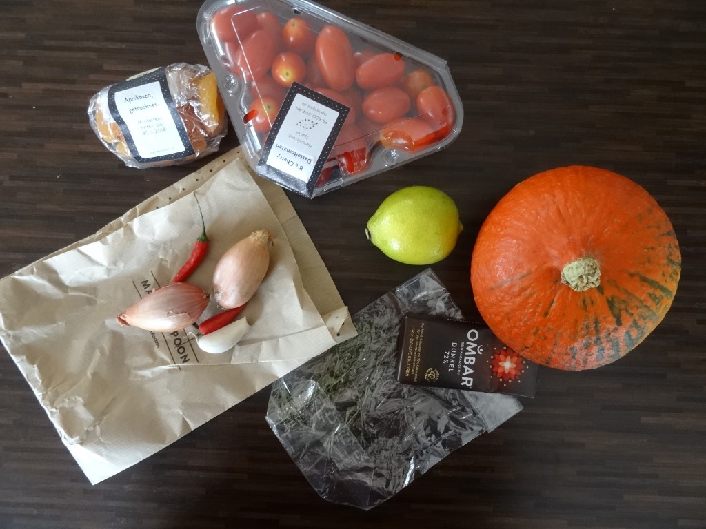 Ich wurde letzte Woche spontan von Marley Spoon gefragt, ob ich an der Challenge teilnehmen möchte. Da ich die Idee toll fand und auch von dem Unternehmen bereits auf anderen Blogs positives gelesen hatte, wollte ich. Letzten Freitag kam dann ein kleines Päckchen an, mit Kühlakkus und gefüllt mit verschiedenen Lebensmitteln. Jetzt war die Kunst daraus essbare Gerichte zu kreieren. Da ich kein großer Fan von süß-salzigen Gerichten bin, habe ich mich entschieden, zwei Gerichte zu kochen. Einmal ein Hauptgericht, eine schön würzige Kürbissuppe und außerdem ein Dessert, kleine Aprikosen-Kürbis-Schoko-Trüffel mit Ricotta (Rezept folgt morgen).