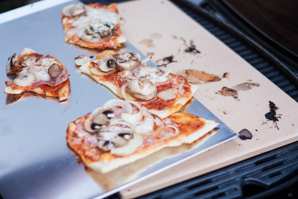 Zubereitung: Wenn man den Kniff mal raus hat, wie man die Pizza gut auf den Stein legt, ohne dass der Belag herunterfällt, klappt es super. Ich muss mir noch so ne coole Pizzabäcker-Schaufel zulegen, dann geht es sicher auch leichter. Insgesamt war ich aber begeistert, wie gut das Pizza-Grillen geklappt hat!