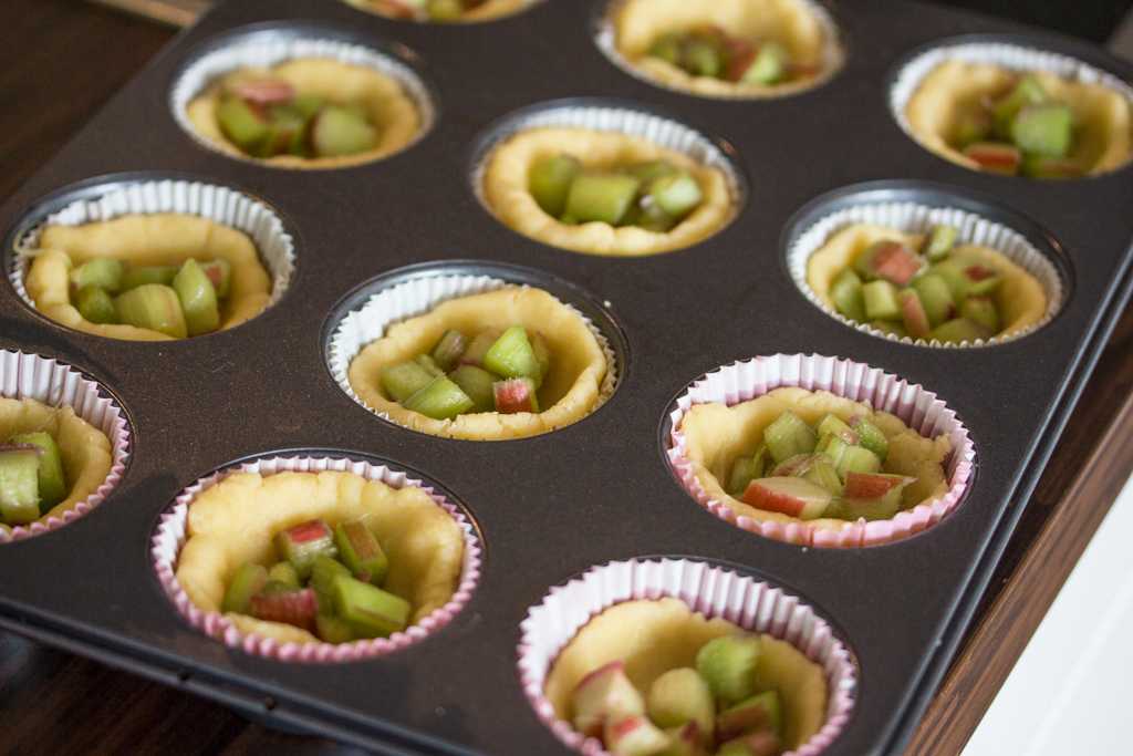 Wie die Zeit verfliegt! Schon wieder ist die Rhabarber-Saison fast zu Ende. Ich habe jetzt schon auf Vorrat Rhabarber eingekocht und eingefroren, denn ich LIEBE diesen süßsäuerlichen Geschmack so sehr. Besonders in Form von Limonade (selbstgemacht mit Sirup als Basis) oder Gebackenem. Diesmal als kleine feine Küchlein mit buttrigem Mürbteigboden und einem saftigen Vanielleguss-Füllung. Darauf ein Hauch Baiser und fertig sind meine neuesten Lieblingscupcakes.
