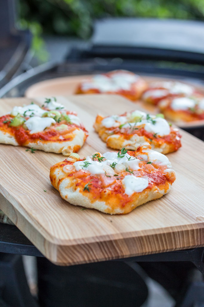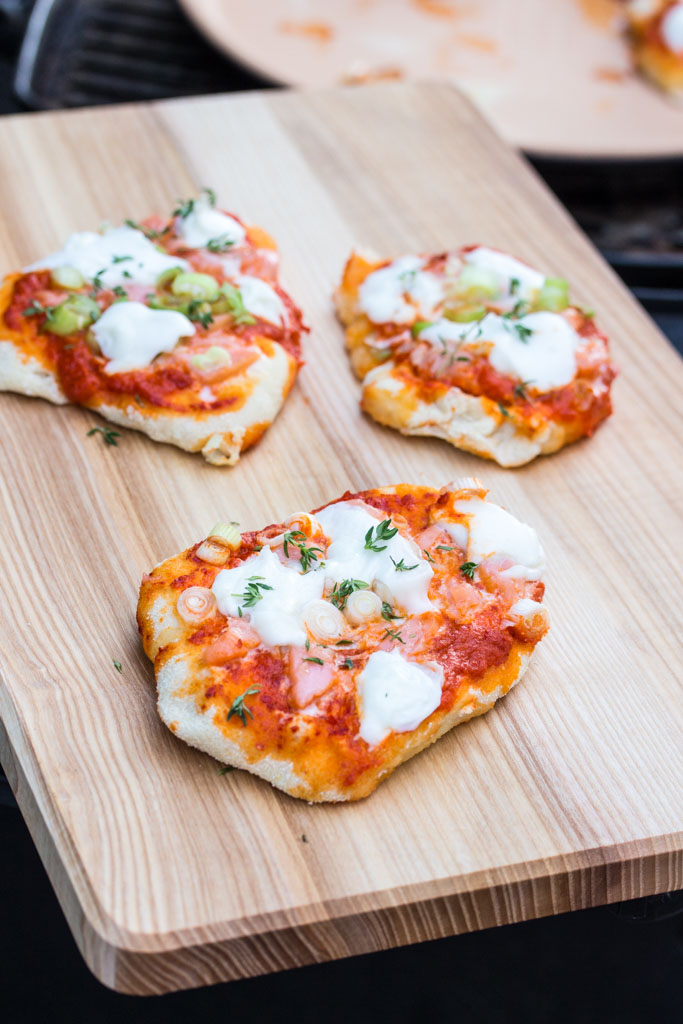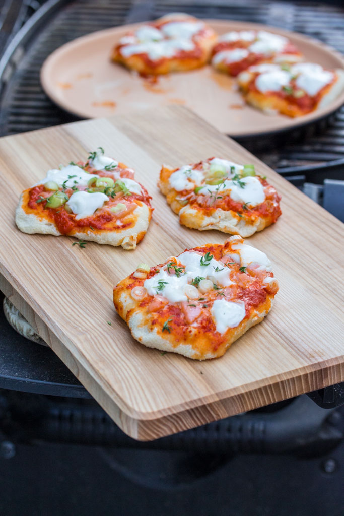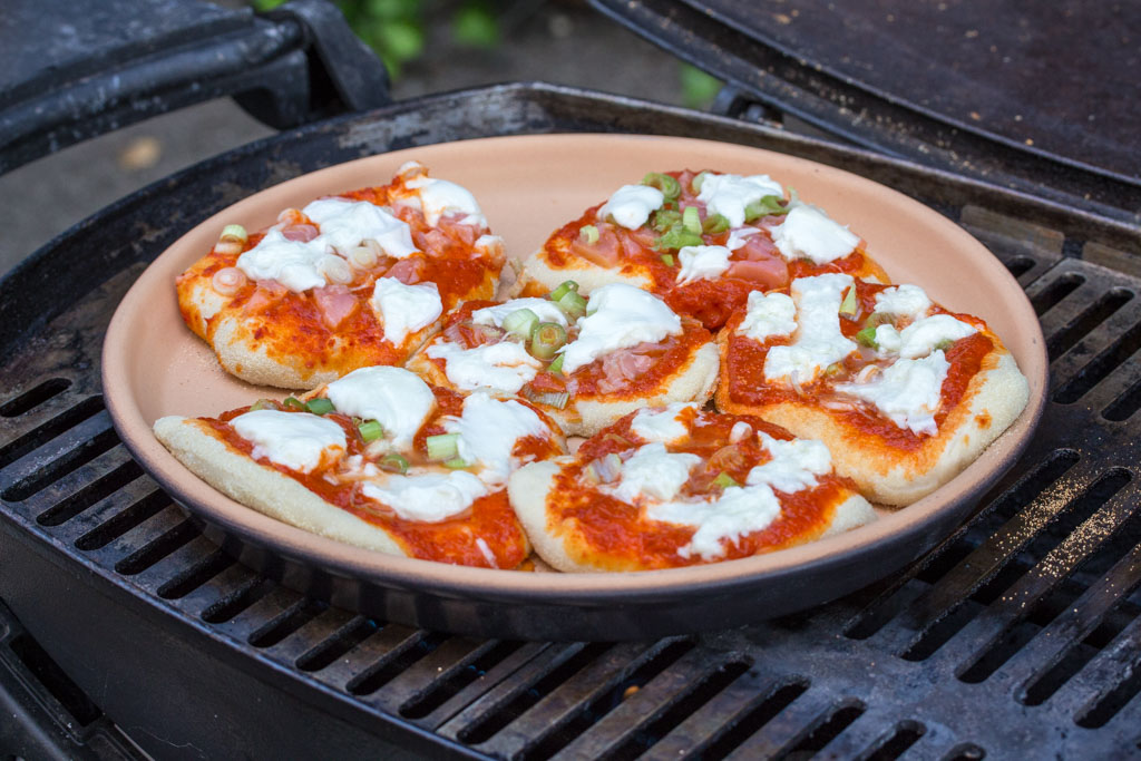 Wir haben neulich mit der Familie was Ähnliches ausprobiert, die Pizzen wurden jedoch gebacken und nicht gegrillt, denn so einen tollen Backstein haben wir nicht in der Küche.